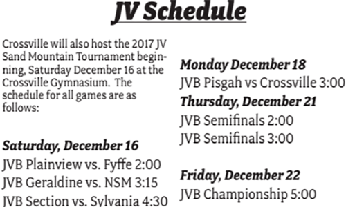 RAINSVILLE, Ala. — The 2017 Sand Mountain Tournament will be held at Crossville this year, and tournament play will begin this Saturday at 2 pm with Fyffe and Plainview JV teams tipping off.