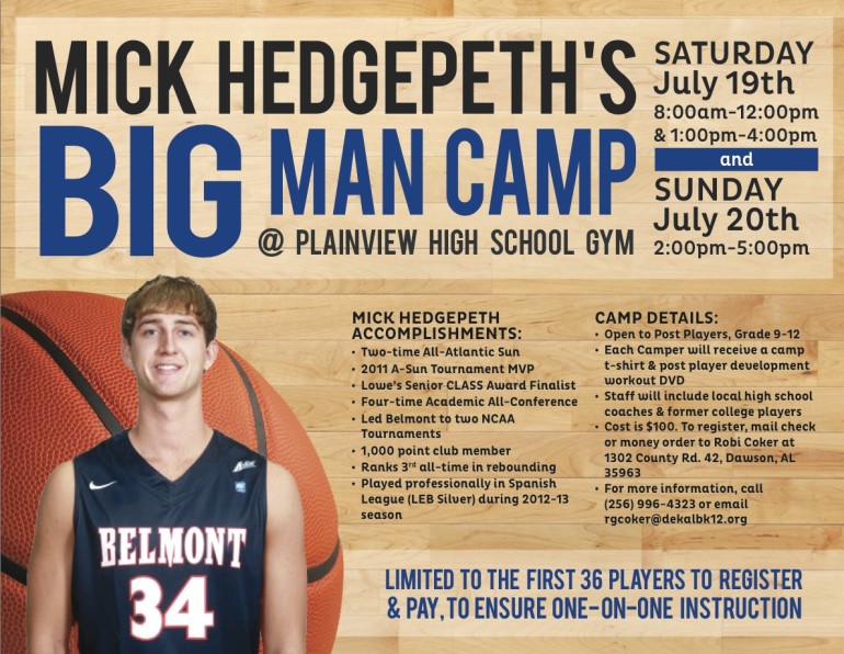 Former Crossville Lions legend, Mick Hedgepath, and Alabama All-Time scoring leader, Heather Mayes Powell (Fyffe),  headline the summer slate of basketball camps.