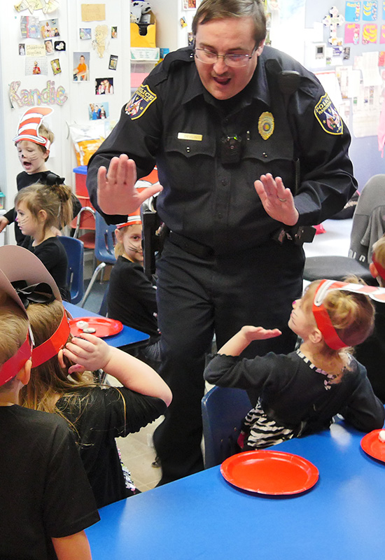 On Thursday morning, after responding to a call, Devlin spent the next couple of hours reading to children at Kandieland Daycare. The kids were all smiles as he navigated through the difficult tongue twisters of "1 Fish, 2 Fish, Red Fish, Blue Fish," in honor of the National Education Association's, "Read Across America Day," which is celebrated on Dr. Seuss's birthday, March 2.